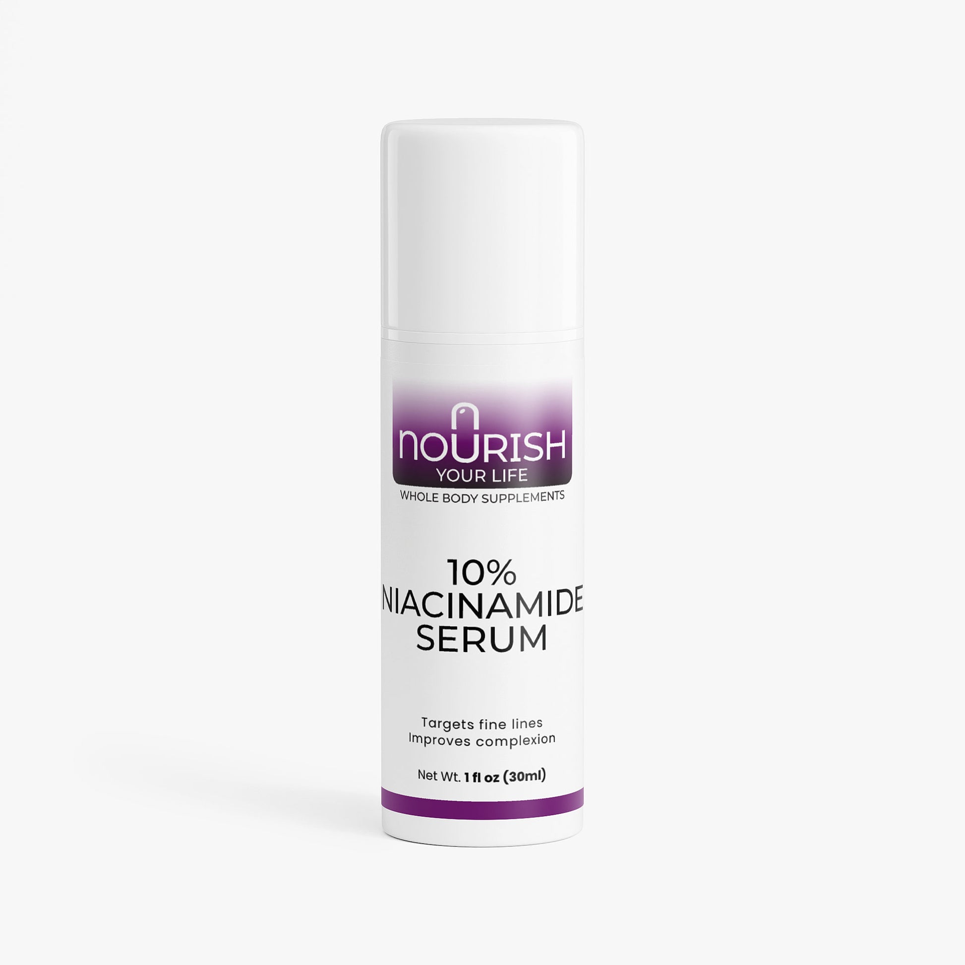 Experience the harmonious synergy of Sodium Hyaluronate and Propanediol, delivering deep hydration and moisture retention, in our concentrated 10% Niacinamide formulation. Indulge in the comforting benefits of Chamomilla Recutita Flower Extract and Allantoin, blending to nurture skin resilience and enhance a tranquil complexion. Tailored to minimize pore visibility and restore skin balance, our serum is a comprehensive solution for radiant, even-toned skin. Embrace the power of targeted skincare with our 10% Niacinamide Serum, an essential addition to your daily routine for a visibly healthier and more vibrant complexion.