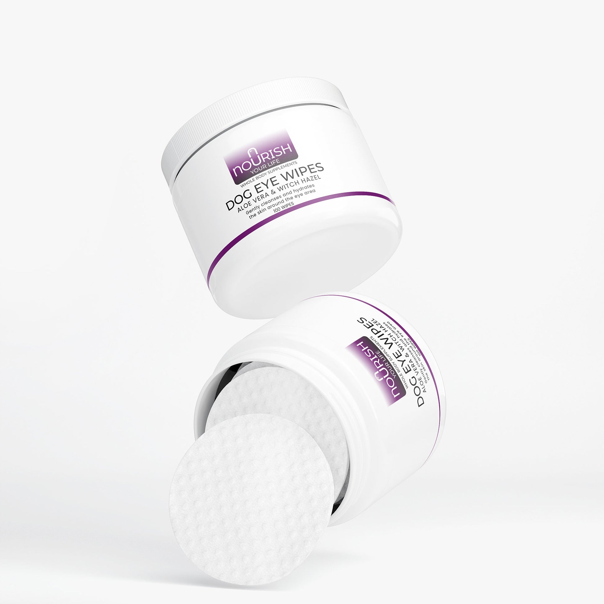 Our dog eye wipes make it easy to clean around your dog's eyes to remove tear stains and debris. These wipes come pre-moistened, ready to use. They contain 100% Natural Ingredients, including moisturizing agents such as Aloe Vera, and calming actives, such as Witch Hazel. While gently cleaning the area, the product will also support hydration and leave the eye area feeling smoother.