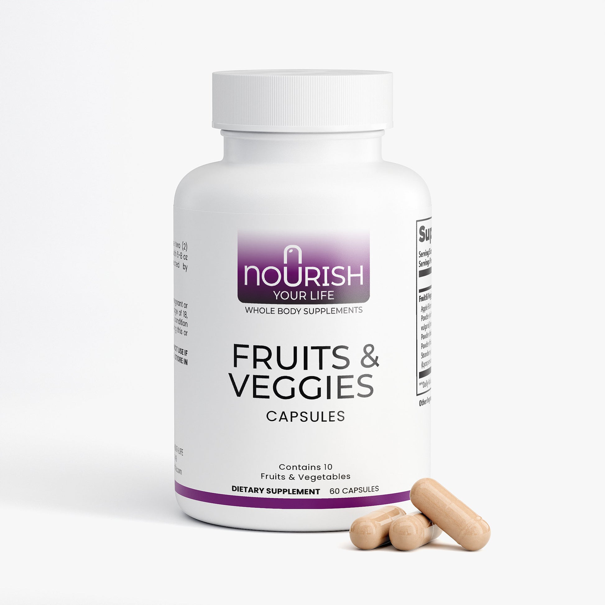 Ingredients: Apple Fiber Powder (Malus pumila) (fruit), Carrot Powder (whole carrot), Beet Root Powder (Beta vulgaris) (root), Blueberry Powder (fruit), Garlic Powder (bulb), Ginger Powder (root), Raspberry Powder (fruit), Red Bell Pepper Powder (fruit), Strawberry Juice Powder (fruit), Tomato Extract (Lycopersicon esculentum) (fruit), Gelatin (capsule), Brown Rice Flour.