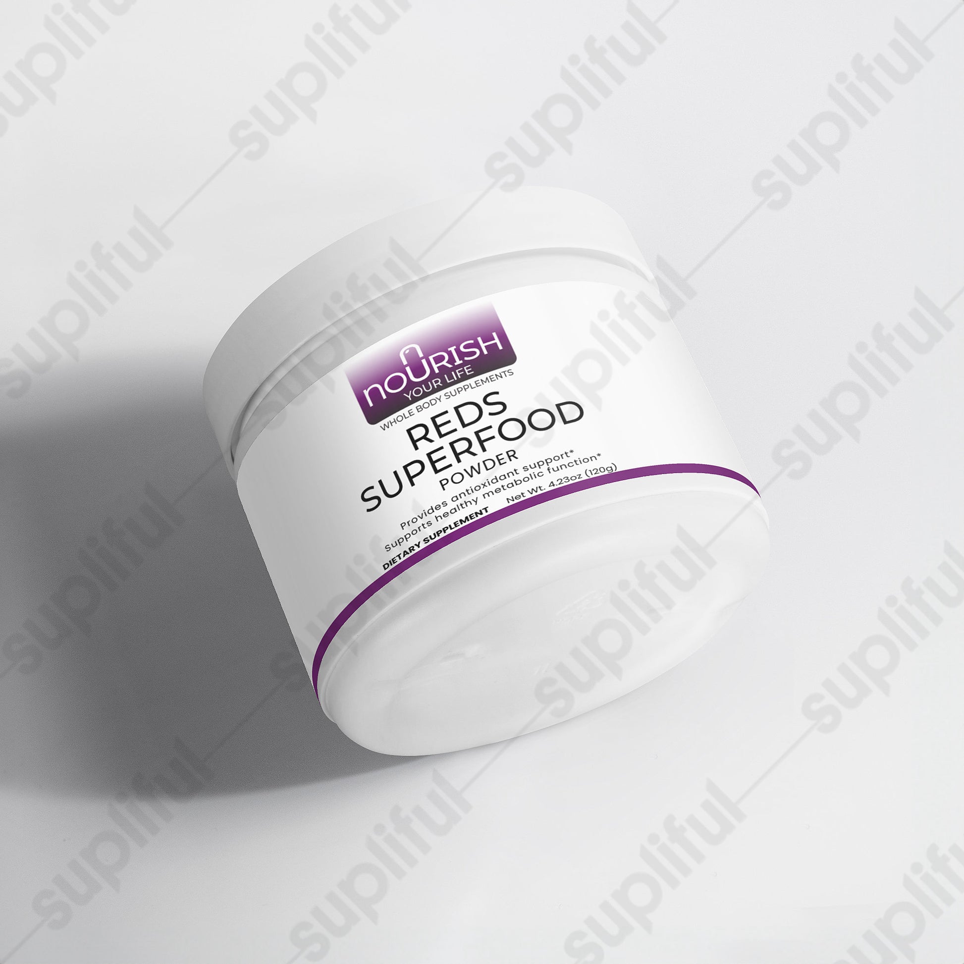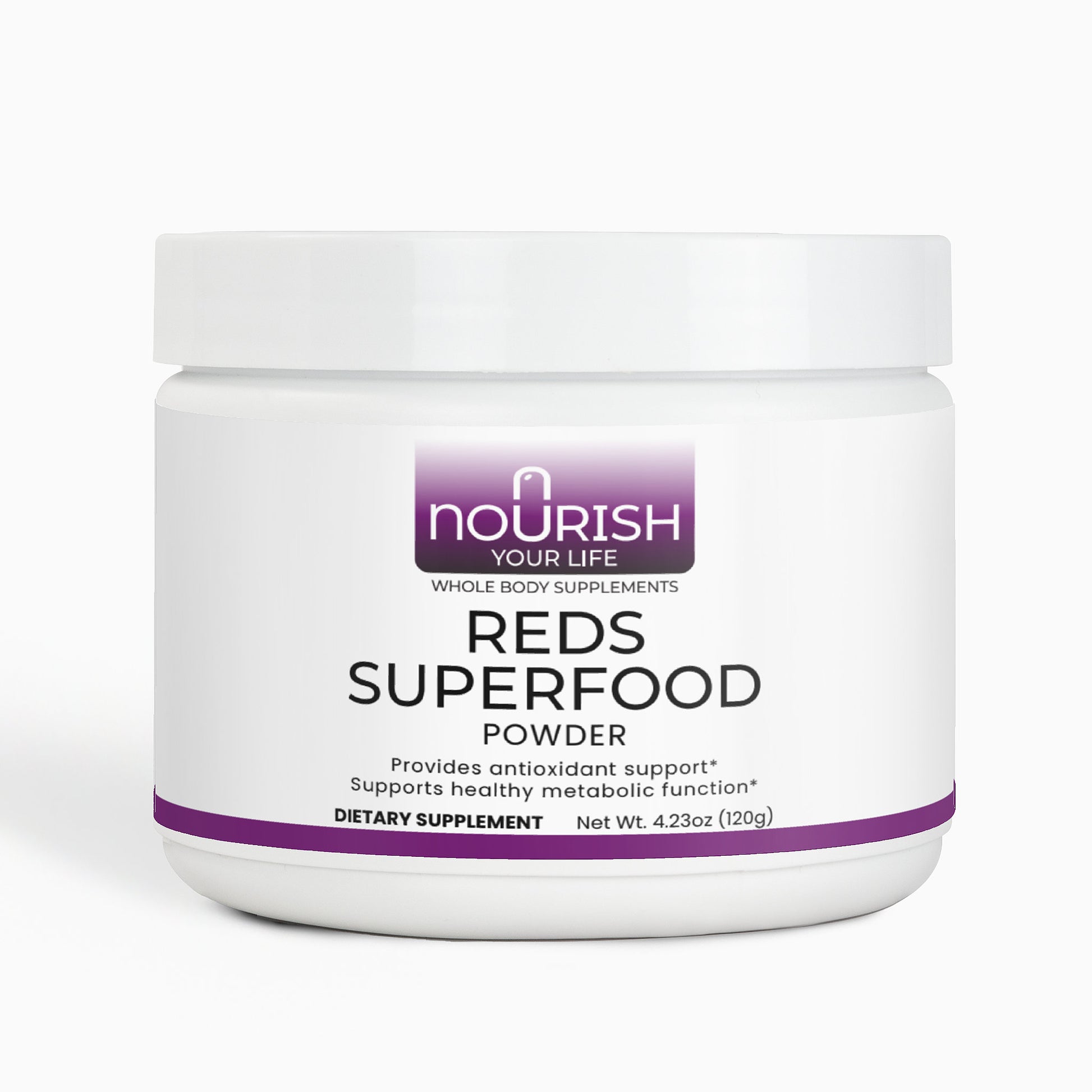 This reds powder supplement offers a rich blend of fruits, vegetables, and botanicals aimed at delivering antioxidants, fiber, and essential nutrients for overall health. The formula includes Beet Root, Strawberry Juice, Hibiscus, and a variety of other nutrient-dense ingredients like Acai Juice Powder and Cranberry Powder, designed to support optimal wellness. With a content of 120 grams, this supplement is perfect for daily consumption, providing a convenient way to boost your intake of vital nutrients and antioxidants to support health and vitality without the need for artificial additives.*