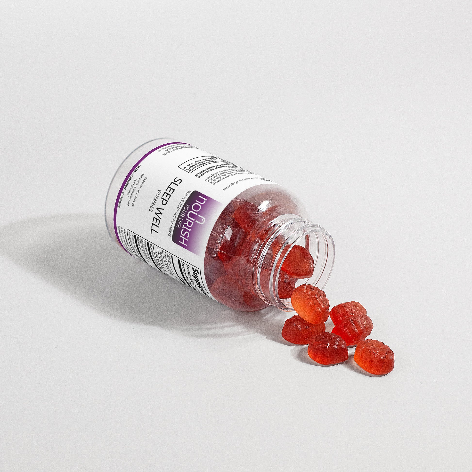 Ingredients: Passiflora Extract (Passiflora incarnate)(herb), Vitamin B6 (as Pyridoxine Hydrochloride), Melatonin, Glucose Syrup, Sugar, Glucose, Pectin, Citric Acid, Sodium citrate, Natural Passion fruit flavor, Vegetable Oil (contains Carnauba Wax), Purple Carrot Juice Concentrate (Color).